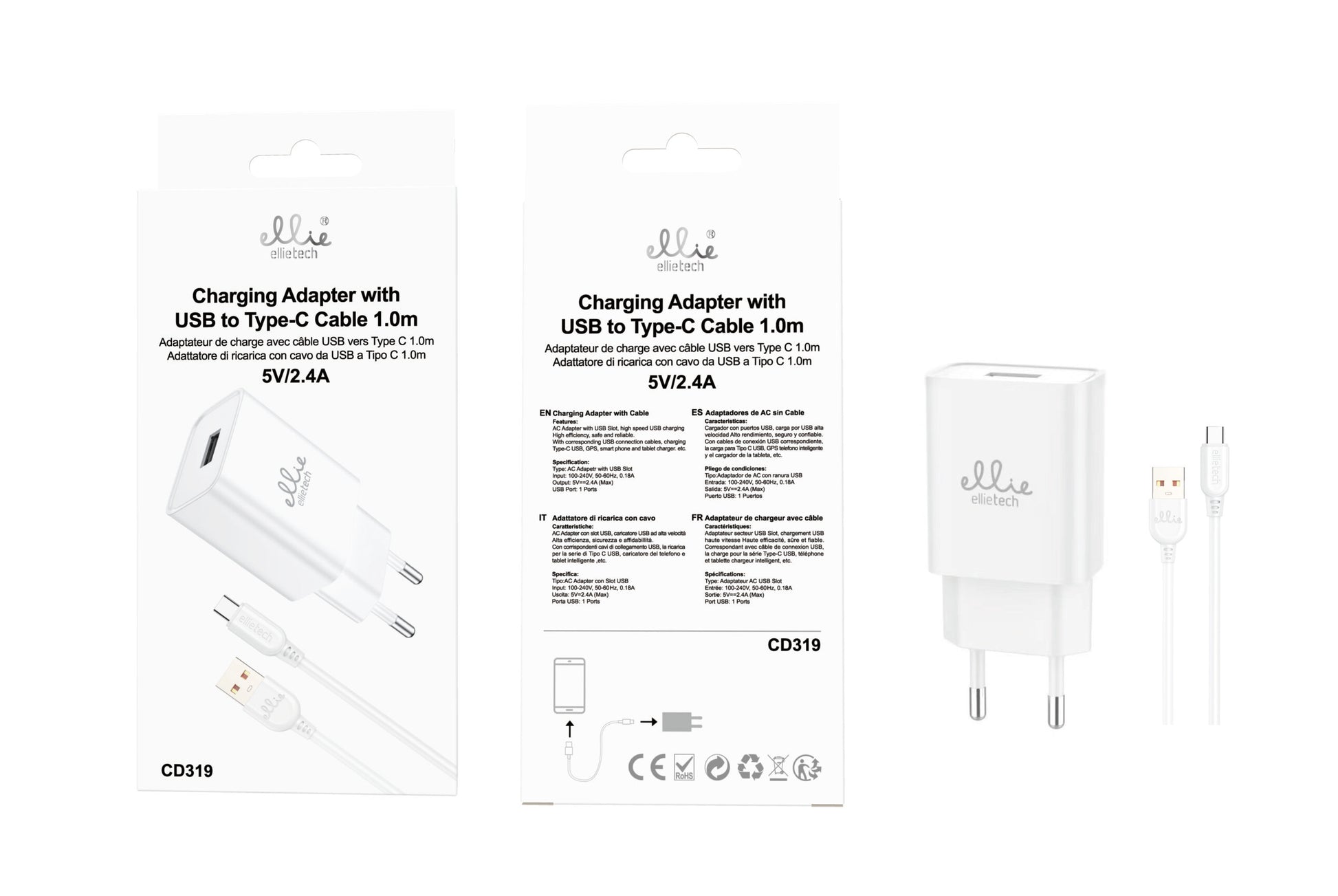 Ellietech CD319 Chargeur avec câble Type-c 5V/2,4A 1M